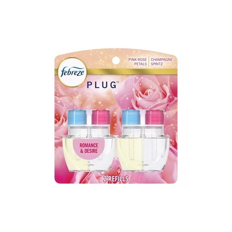 Febrezee Plug In Refills New Luxe Limited Edition Plug In for Odor-Fighting Fade Defy PLUG Air Freshener, (2) Count of 0.87 fl oz Refills (Romance & Desire)
