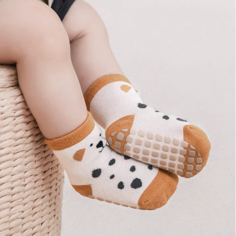 - These baby trainer socks have the ABS nubs on the sole. No more slipping when romping and dancing.