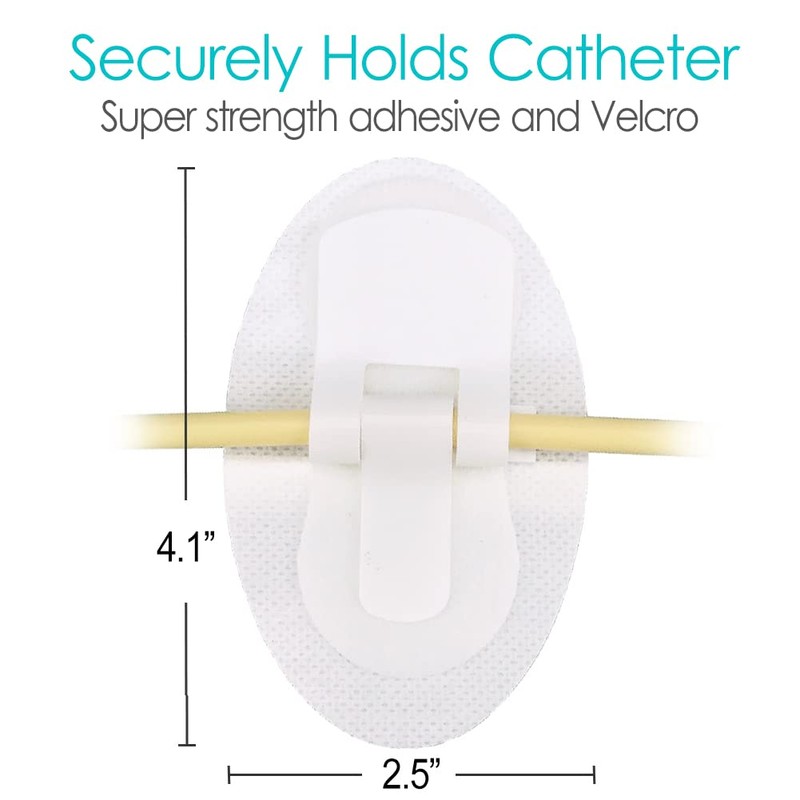- Tips for Optimum Use: Before applying the G tube pads, clean and degrease the retention area. Apply to totally dry skin. After attaching to your abdominal, remove the paper strip in the center from the adhesive pad and place the tube on the sticky pad, hold the tubes with catheter securement loop. The interlaced loops hold the tube in place no matter what size it is. The feeding tube securement loop is easy to use and holds the catheter firmly.