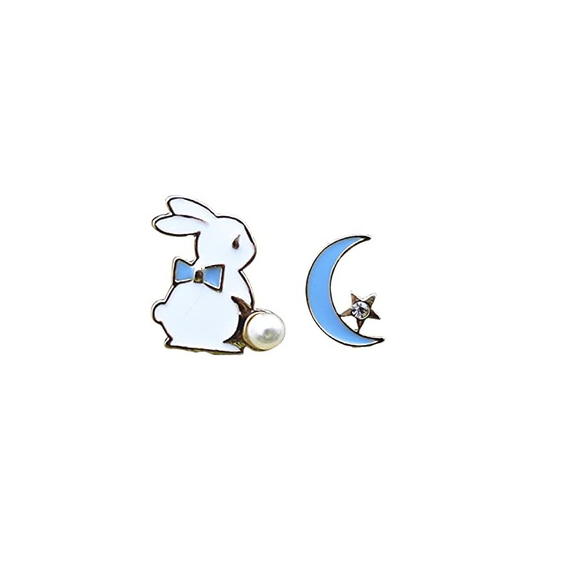 Feel "Moon and Rabbit Earrings" Women's Cute Rabbit Gift, Metal, Pearl