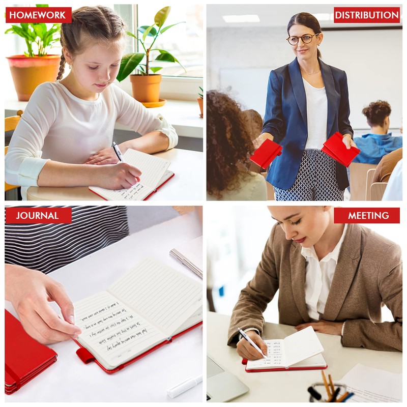 - Feela 15 Pack College Ruled Red Notebooks contains 15 college ruled sturdy cover notebooks and 15 Black Retractable Pens. Each of the notebooks measures 3.5” x 5.5”, which is perfect to carry and easily held by young girls and boys. These black cute pens are customized to be placed in the pen holder, which is pretty convenient.