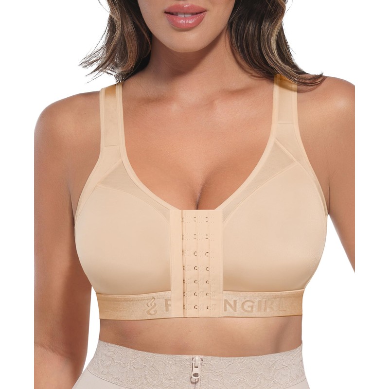 FeelinGirl Post Surgery Bras for Women Front Closure Breast Reduction Mactectomy Bra Beige XX-Large