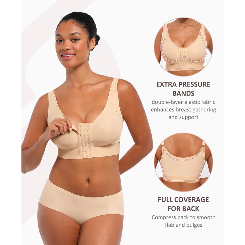 FeelinGirl Surgical Bras Post Surgery After Breast Augmentation Everyday Bras for Women Wirefree Front Closure Skin