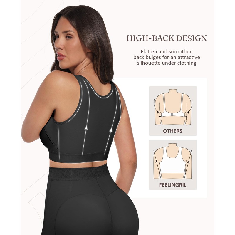 - SMOOTHS BACK & UNDERARM ROLLS:With wide shoulder straps and a stretchy high-back design, our posture corrector bra smooths armpit bulges, back rolls, and side fat (mamma accessoria). It shapes your silhouette and instantly improves posture, giving you a more confident, upright look.