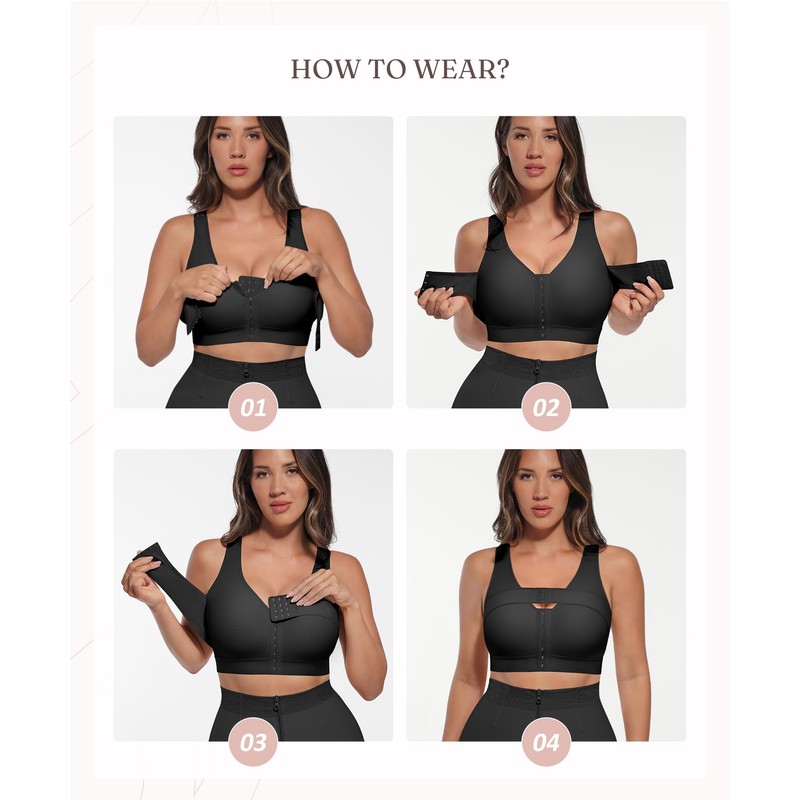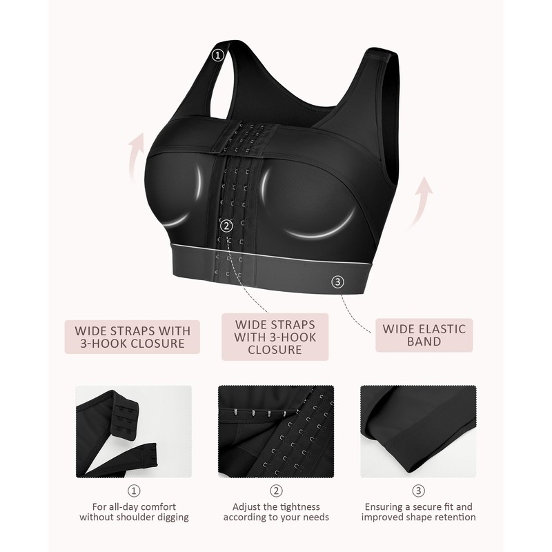 - CUSTOMIZABLE FIT:Our front-closure bra is easy to wear and offers a customizable fit. It has a front hook-and-eye closure with three rows and adjustable shoulder straps to fit various cup sizes and swelling. You can adjust the fit and compression anytime throughout the day for your comfort.