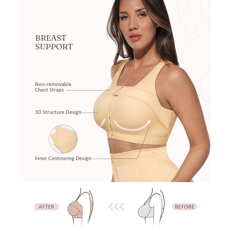 - CENTLE BREAST SUPPORT:Our push-up posture bra gently lifts and brings the breasts together to help prevent sagging. The adjustable support band stays securely in place, providing full coverage and soft compression—ideal for faster recovery after breast lift, reduction, augmentation, or implant surgery.