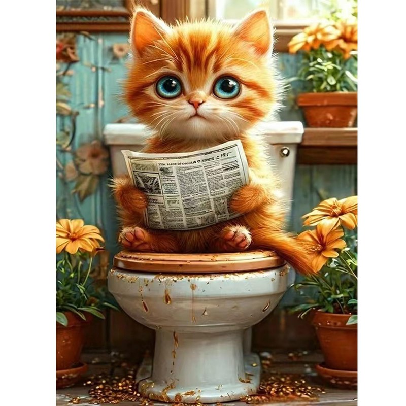feelive Diamond Painting Kits für Erwachsene, Kat DIY Diamant Painting Bilder für, Bausätze für Diamantmalerei 5D Runde Steine Diamant Painting für Zuhause Dekor 30x40cm