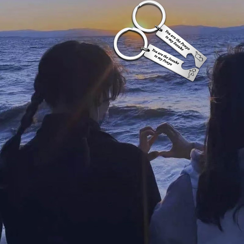 - ❤Keychain Set❤This Keychain hand engraved with-You are the Ponyo to my Sosuke/You are the Sosuke to my Ponyo.Keychain Set for TV Serious Lover Fans Gift