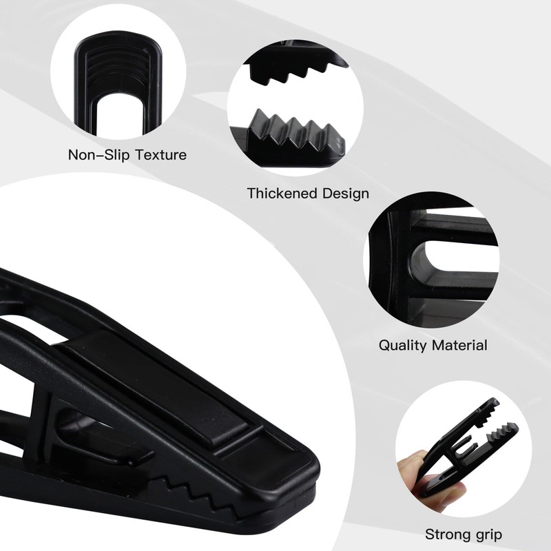 Feelorna Pack of 24 Clothes Pegs, Non-Slip Plastic Towel Clips, Lightweight Small Clothes Pegs, Strong Beach Towel Clips, Multi-Purpose Clothes Pegs for Hanging Hats, Socks, Towels (24, Black)