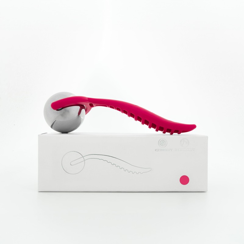 FEELVIT Massage Roller with Relaxing Hot/Cold Therapy Function, Massager with Handle, Ice Roller, Relaxation and Wellness Gift (Pink)