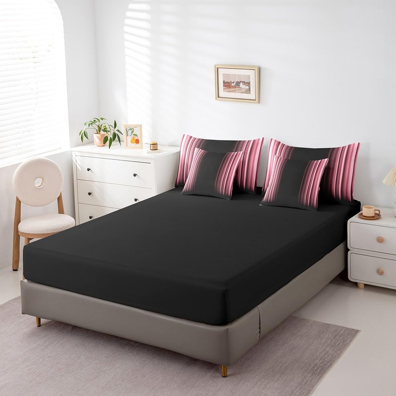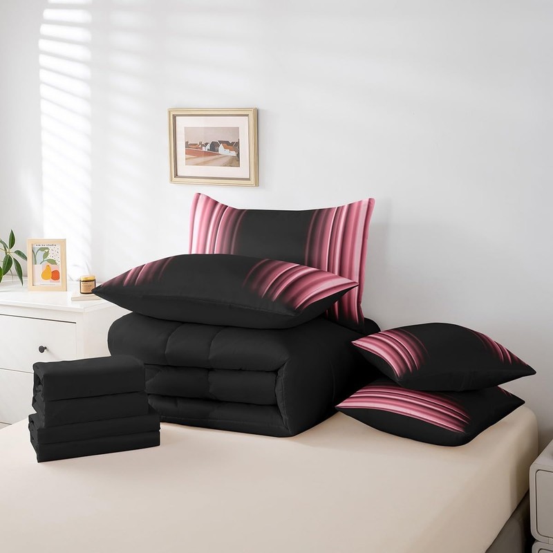 Feelyou Abstract Ombre Comforter Set with Sheets Kids Teens Pink Black 7 Piece Bedding Set Room Decor Twin Size,Reversible Black