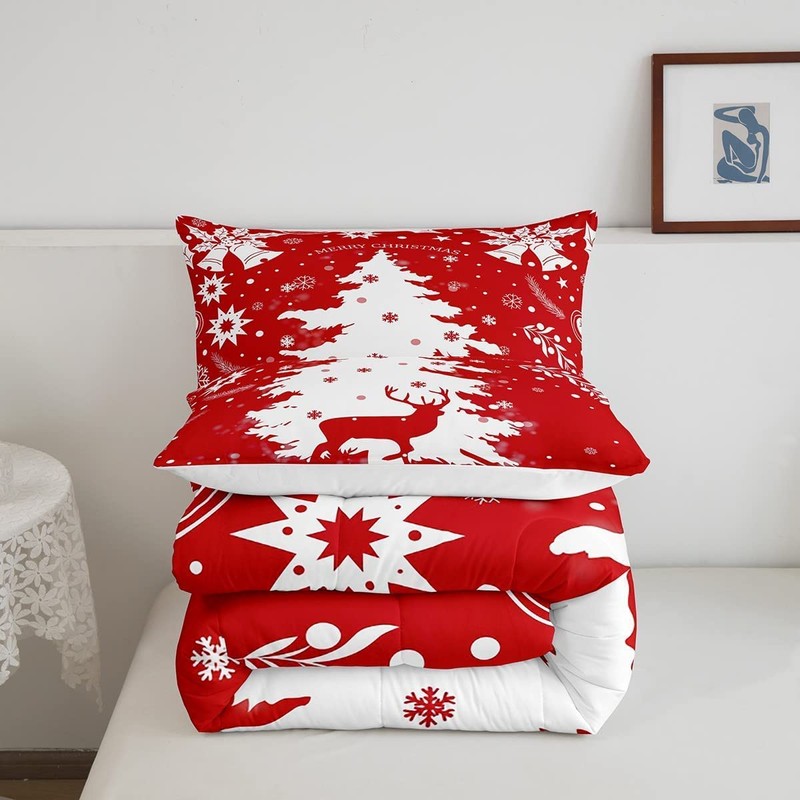 Feelyou Christmas Comforter Set King 3 Pieces Tree Snowflake Deer Printed Bed...
