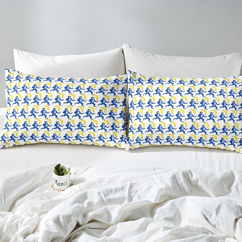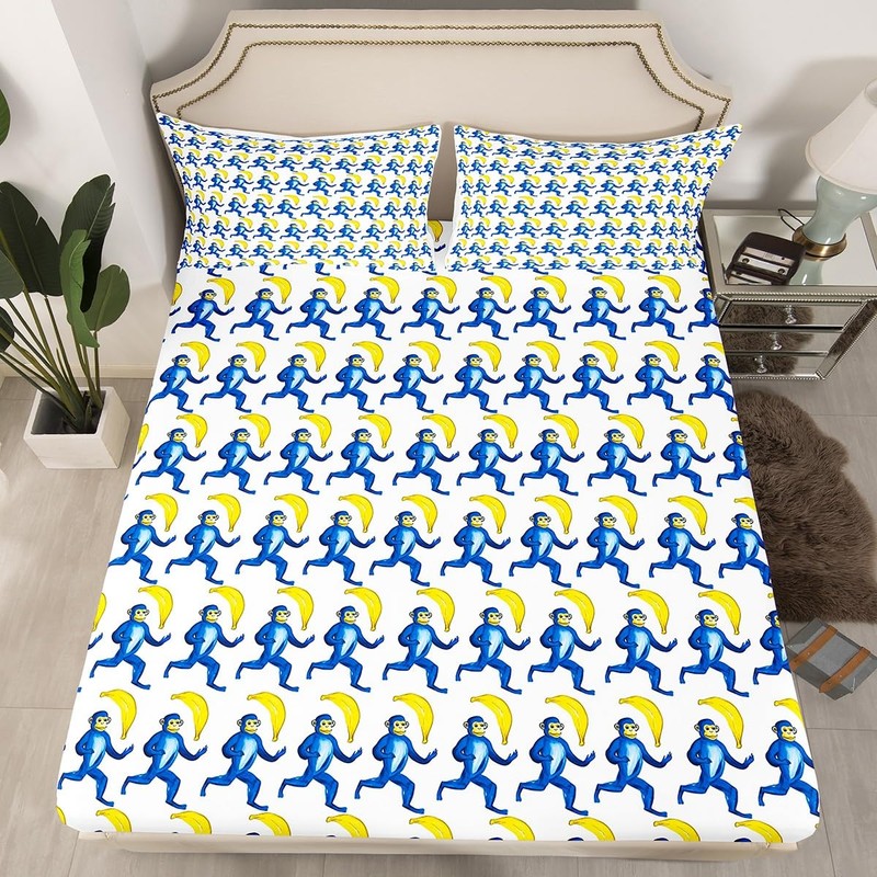 Feelyou Cute Bunny Bed Sheets Roller Dupes Rabbit Deep Pocket Fitted Sheet for Kids Boys Girls Kawaii Animal Preppy Bedding Set Queen Size Blue Monkey Banana Sheets Set,No Flat Sheet