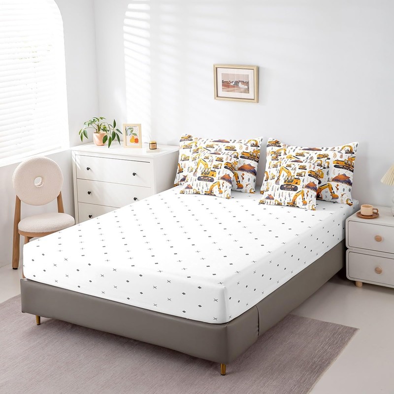 Feelyou Excavator Twin Comforter Set with Sheets Tractor Truck 7 Pieces Bedding Set Kids Boys Tractor Machinery Construction Vehicle Bed in a Bag Cartoon Truck Bed Set