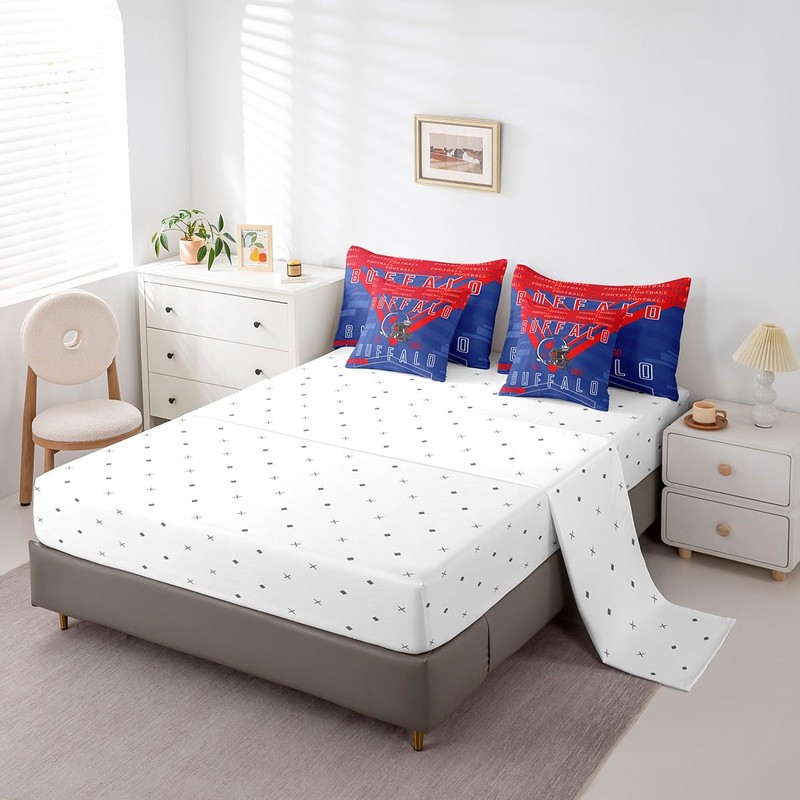 Feelyou Football 7 Pieces Comforter Sets Queen Size Buffalo Bedding Set for All Season Gifts for Football Fans Football City Bed in a Bag with Comforter, Sheets, Pillowcases & Cushion Cover