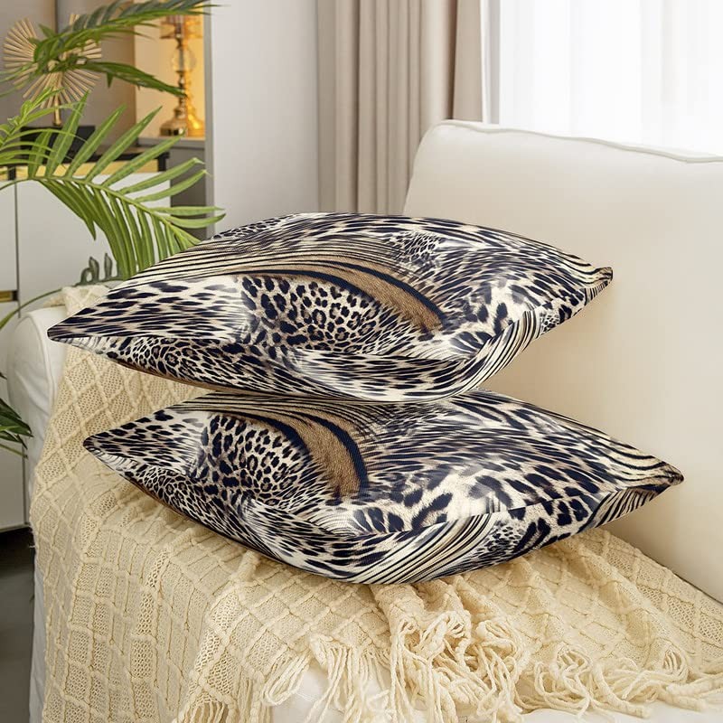 Feelyou Leopard Print Throw Pillow Covers for Couch Sofa Bed,Set of 2 Cheetah Decorative Pillows Cushion Covers,Safari Animal Brown Wild Animal Pillow Inserts Not Included,20x20 inch