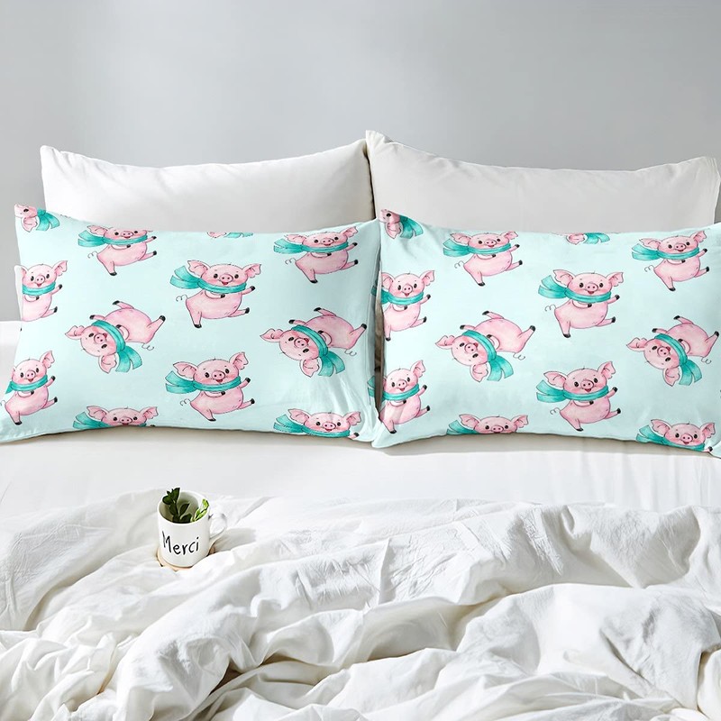 Feelyou Pig Printed Bed Sheet Set Cute Animal Bedding Set Pet Pig Pattern Bed Sheets for Boys Girls Kids Room Decor Lightweight Bed Set Cartoon Pink Pig Twin Size with 1 Pillow Case