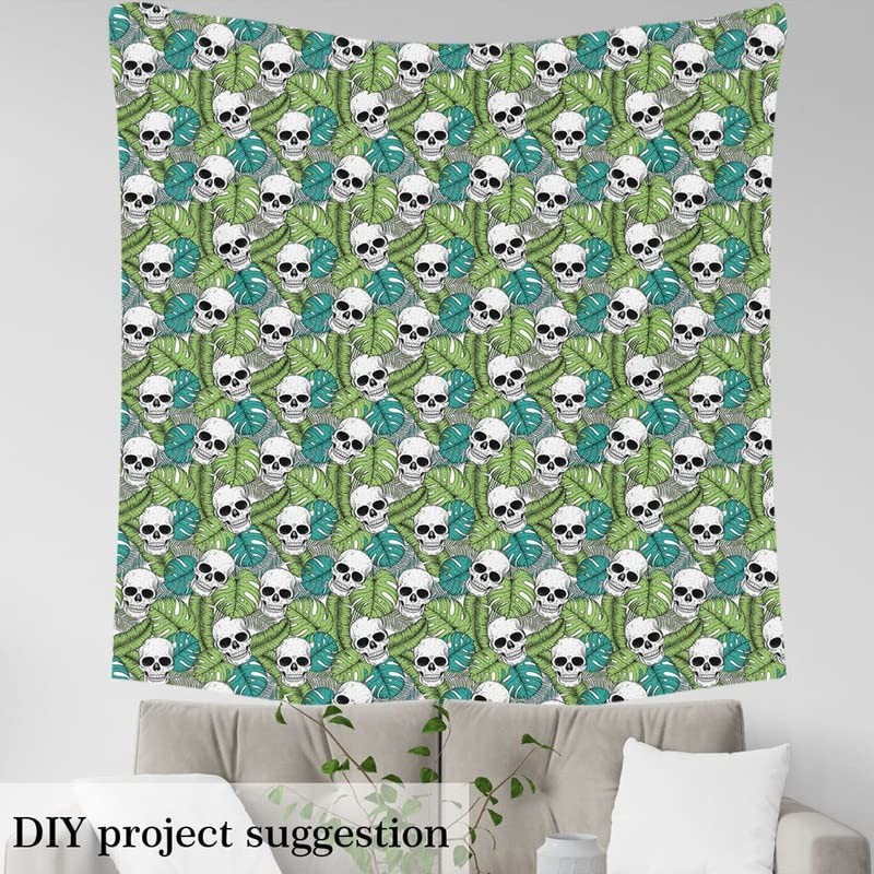 Feelyou Skull Fabric by The Yard, Palm Leaves Skeleton Pattern Upholstery Fabric for Chairs, Tropical Botanical Leaf Decorative Waterproof Outdoor Fabric, 1 Yard