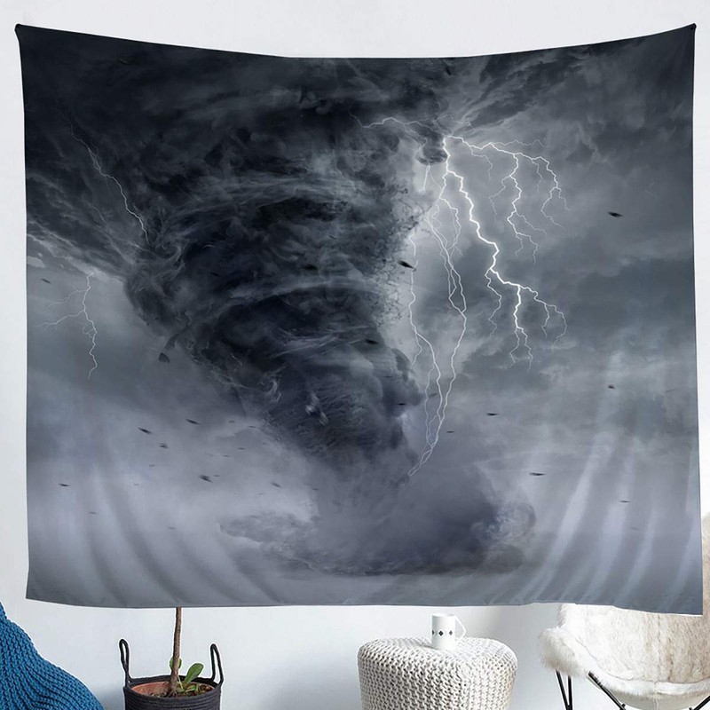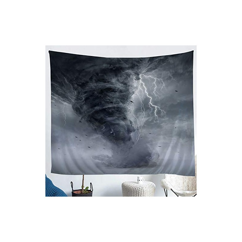 Feelyou Tornado Theme Wall Blanket Tornado and Lightning Pattern Wall Hanging Nature Black Gray Unique Tapestry for Kids Adults Wall Art Ultra Soft Room Decor XLarge 70x92