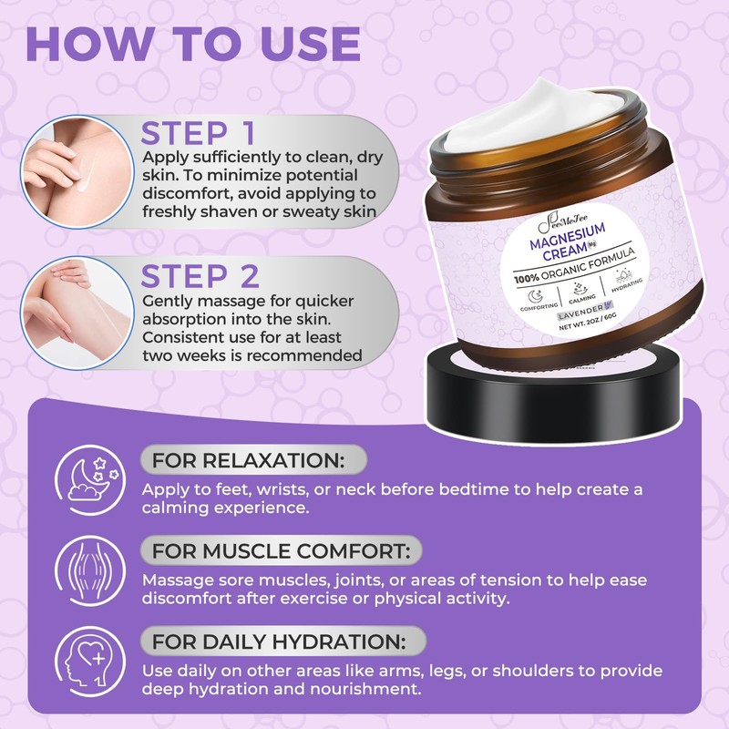- Versatile Benefits: Use our magnesium cream to unwind before bed, support focus during work or study, or care for muscles after exerciseyour perfect daily companion