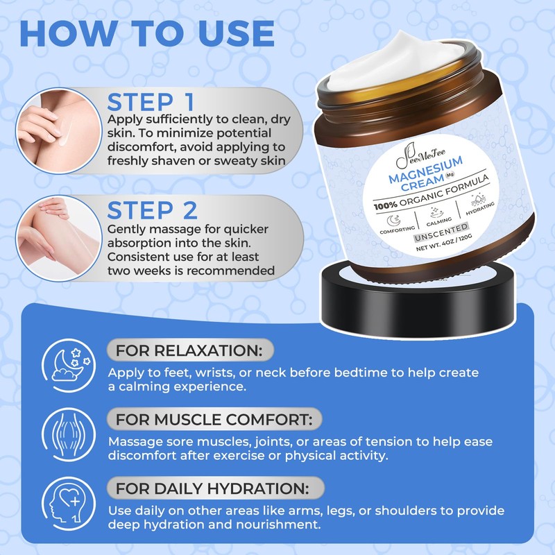 • Safe for All Ages: Formulated without added fragrances and harsh chemicals, our gentle magnesium cream is suitable for adults and children with sensitive skin