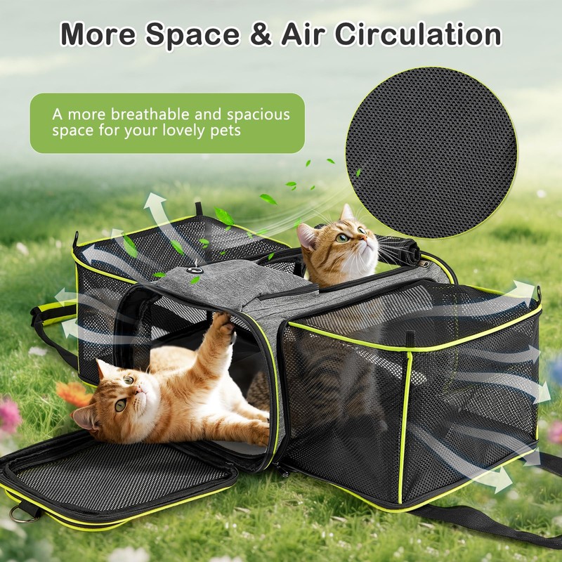 - Airline-Approved Expandable Design: This airline-approved dog carrier with wheels fits most cabin seats and features a soft interior pad for ultimate comfort. The expandable mesh sides create 30% more space for pets to stretch, while enhancing airflow during hot weather. Designed as both a cat carrier bag and a pet stroller, its sleek structure balances portability and functionality—perfect for road trips, outdoor adventures, or daily errands.