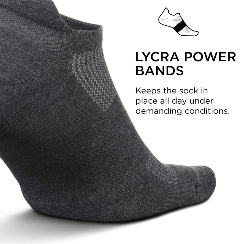 Feetures High-Performance Cushion No Show Tab Solid- For Men & Women, Athletic Ankle Socks, Moisture Wicking- Small, Heather Grey-3Pack