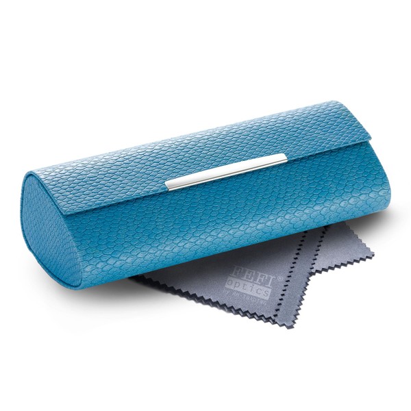 FEFI - Elegant hard case glasses case in snakeskin design with chrome trim, lightblue