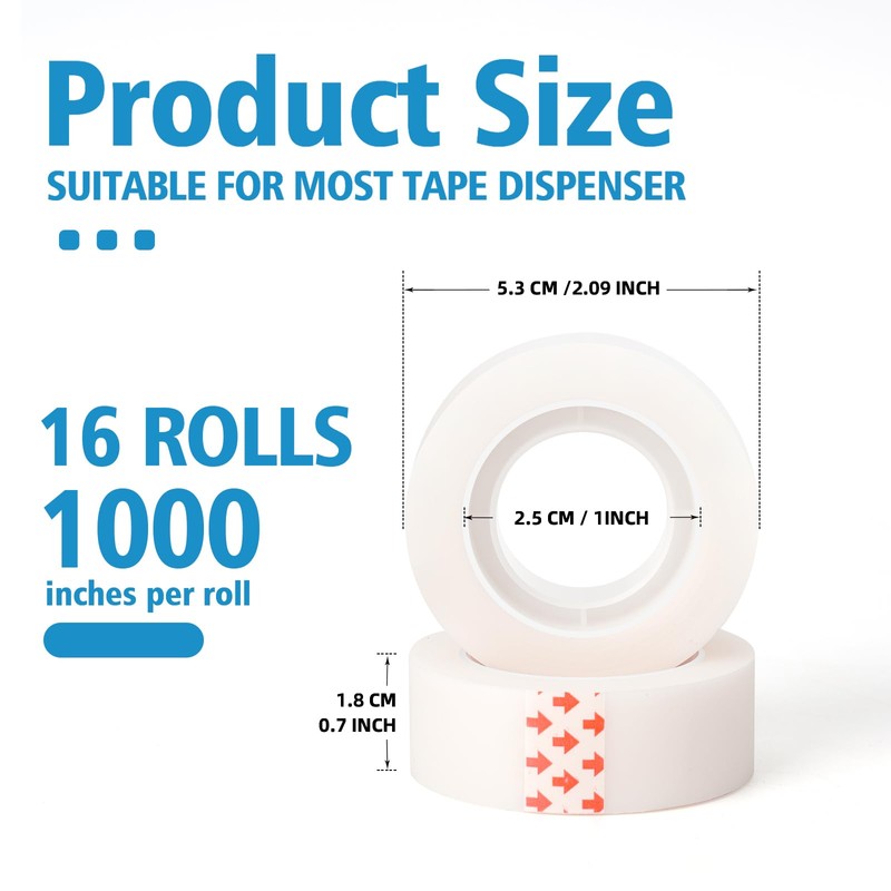 - Complete Dimensions: You will receive 96 rolls of tape for dispenser refill, with each roll approximately 0.7 inches/18 millimeters wide and 1000 inches/25 meters long, with a 2-inch core, suitable for most tape dispensers