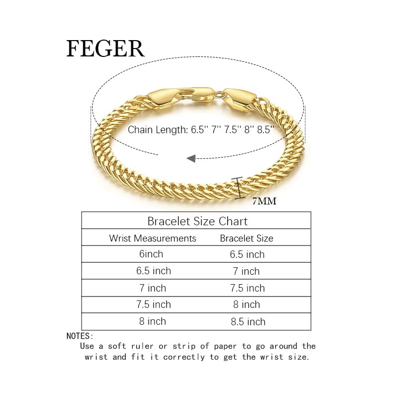 FEGER Gold Cuban Link Chain Bracelets for Men and Women Elegant Versatile Bracelet Gift for Women and Men(6.5-8.5 Inches)