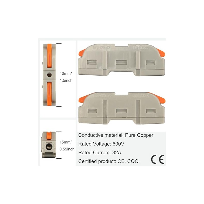 - [Safe to use] Comply with all electrical standards. Suitable for 22-18 AWG Wires. Rated Voltage: 600V; Rated Current: 32A.