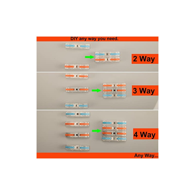 - [DIY Any Way You Need] Multiple individual lever connectors can be spliced into a wiring unit, making the circuits more compact and tidy. Unique design enable more stronger assembled.