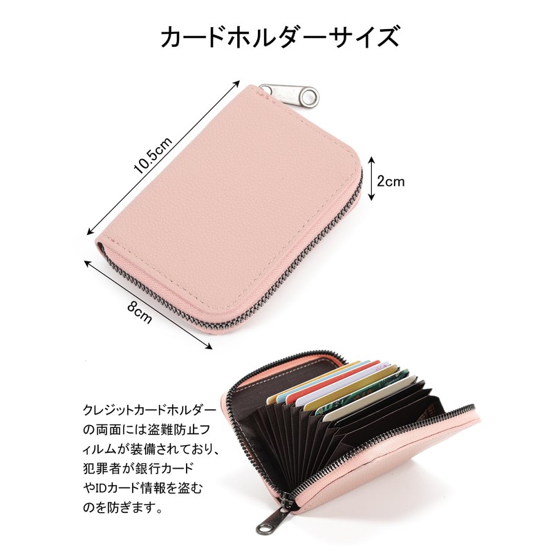 Fegreic Credit Card Case, Card Slot, PU Card Case, Thin, Skimming, Large Capacity, Coin Purse (Holds up to 22 Cards), Pink