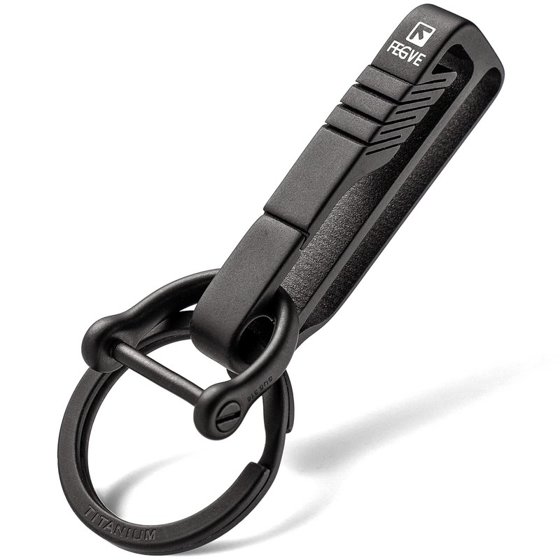 FEGVE Key Belt Clip with Titanium Key Ring and D-shaped keyring, Belt Key Holder Keychain Hook for Men