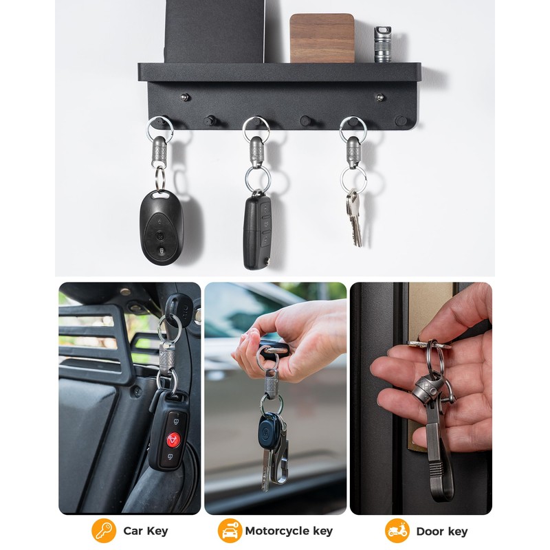 • Gr5 Titanium Alloy: Titanium does not deteriorate, does not rust, and does not deform easily. It is only 0.32 oz and 1.13in in length. Ability to connect 3-4 keyrings with its wide connection slot