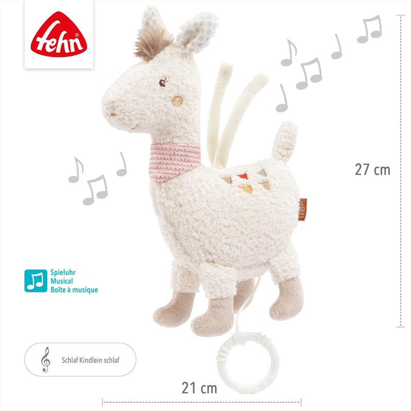 Fehn 058062 Lama Maya Music Box, Cuddly Music Box with Removable Musical Mechanism, Melody "Sleep Kindlein Sleep", With Attachment, For Babies from 0 Months, Size: 24 cm.