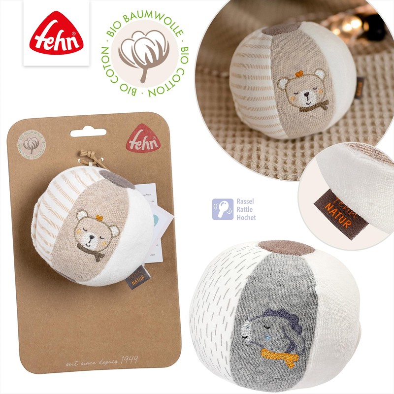- Box contents: 1 x FehnNatur fabric ball with rattle for throwing, gripping, rolling, with organic cotton (organic) / wash at 30 °C / size approx. diameter 11 cm / item no. 052336