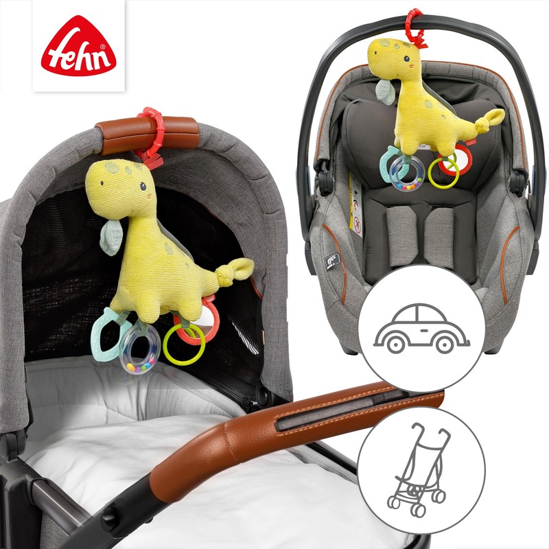 Fehn Activity Toy Dino – Motor Skills Toy with Attachment Ring – Baby Toy with Gripping Elements – Baby Toy to Grab & Discover – Cuddly Toy for Babies and Toddlers from 0+ Months