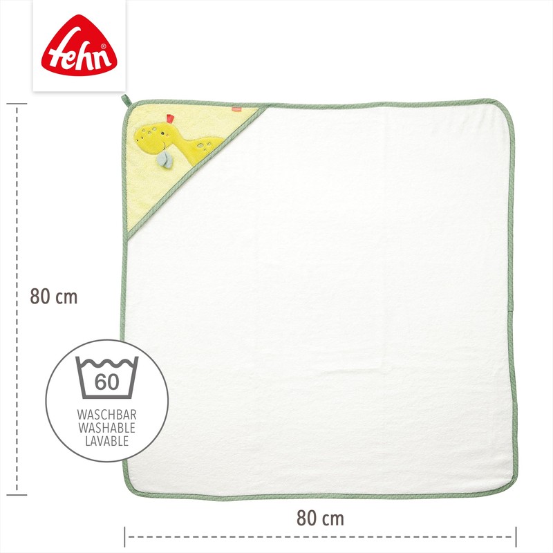 Fehn Baby Dino Bath Towel, Children's Terry Towelling Poncho, Hand Towel with Cute Dinosaur, Baby Bath Towel with Hood for Babies and Toddlers from 0+ Months, Hooded Towel Dimensions 80 x 80 cm