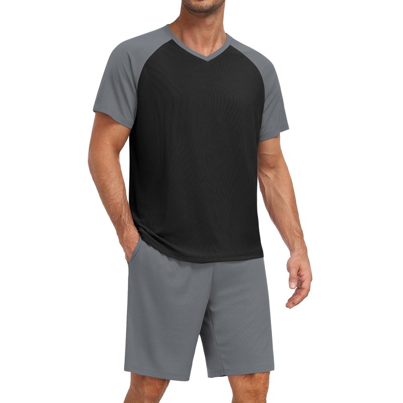 Feiersi Mens Pajama Set Summer Soft Short Sleeve Pjs Sets Lightweight Quick Dry Comfy Loungewear Sets With Pockets(Black-Dark Gray,Small)