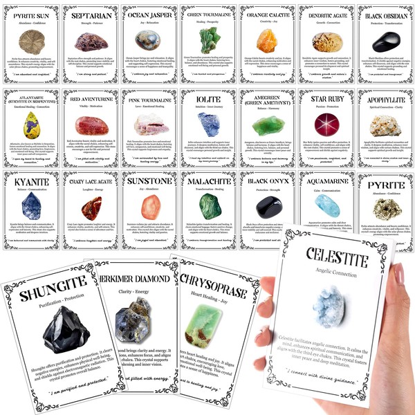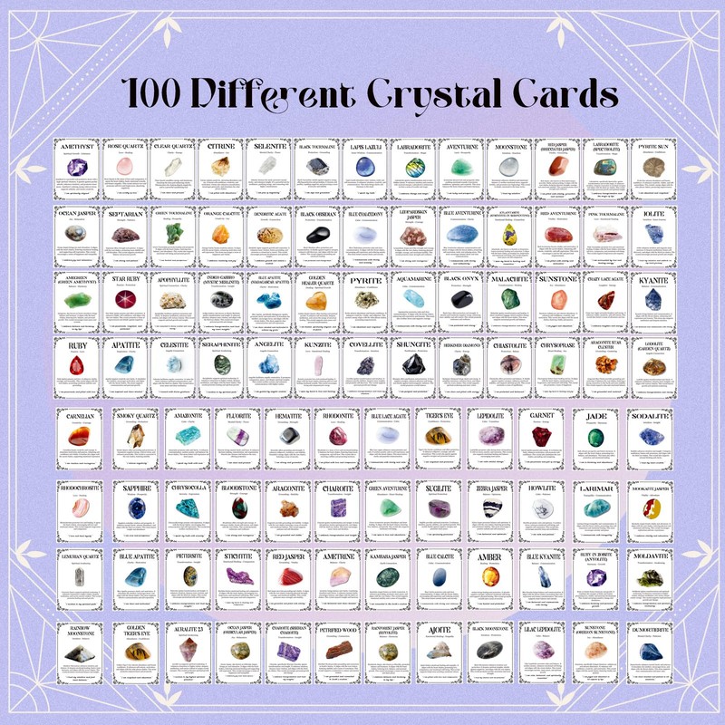 - Product Set: you will receive 100 crystal gemstone cards in different styles, each card is designed with a different gemstone style, and comes with the relevant introduction and meaning of the gemstone; The card is beautifully designed, you can learn different knowledge about crystals through it, it can also help you gain insight into yourself and understand your spiritual journey