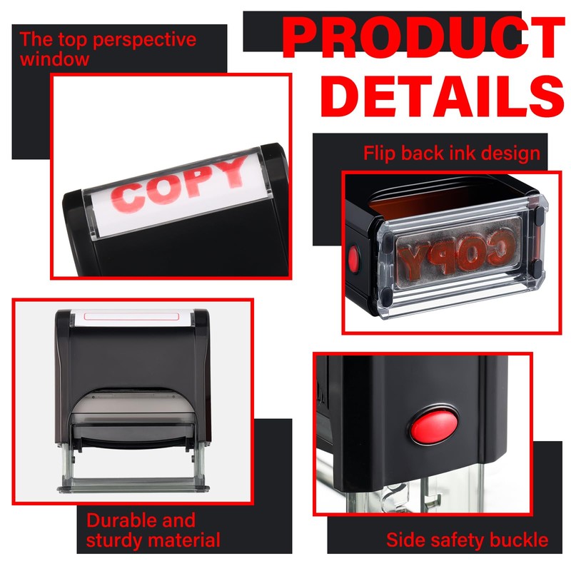 - User Friendly Design: designed with utmost convenience in mind, the copy stamp and scanned stamp features a top perspective window; The translucent base acts like a guide for precise positioning of the stamp; The flip back ink design ensures a continuous stamping efficiency, making it extremely easy to use in an everyday office routine