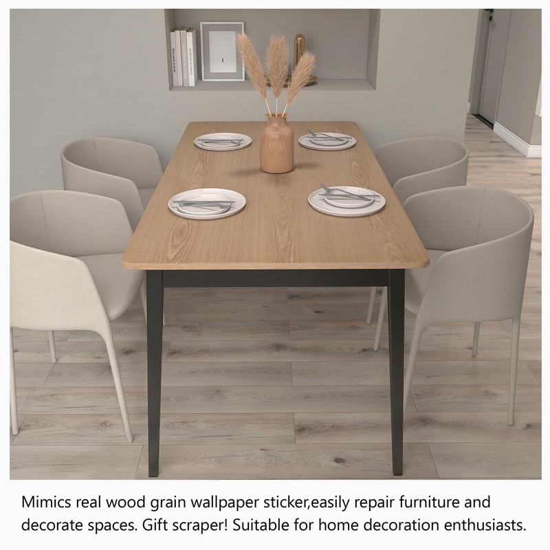 - 4.Easy to use: This renter friendly wallpaper is peel and stick to apply. It‘s easy to install, no need additional glue or complicated installation tools. The peel and stick wallpaper wood look has size marker lines on the back for easy cutting. Use a blow dryer to heat the surface of the removable wallpaper during the application process to make scratches disappear and to make this easy peel off wallpaper fit the object better.