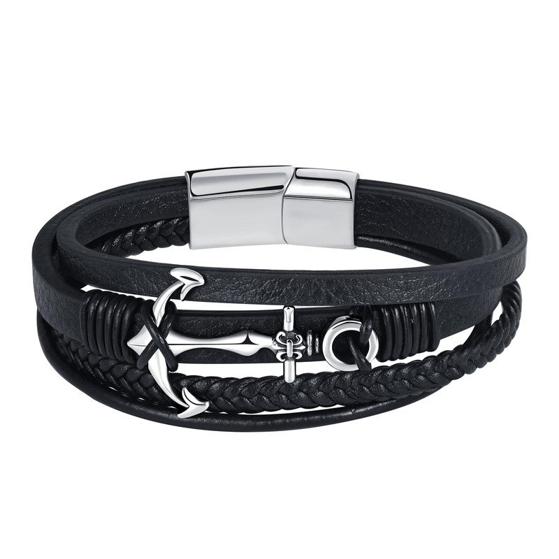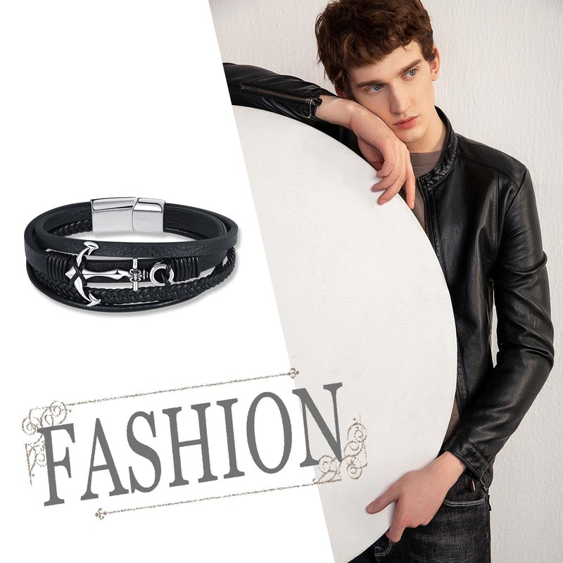 Feilok Leather Bracelet Multi Layer Wristbands Anchor Men's Leather Bracelet ...