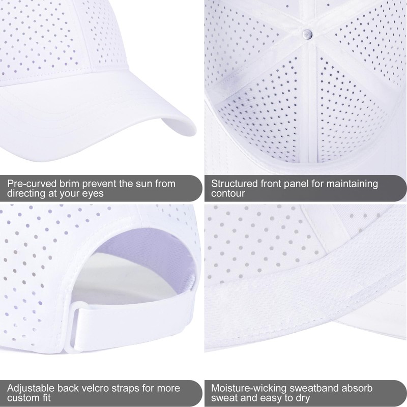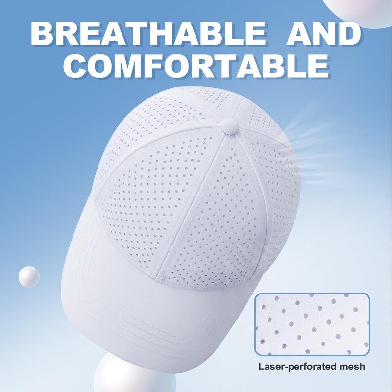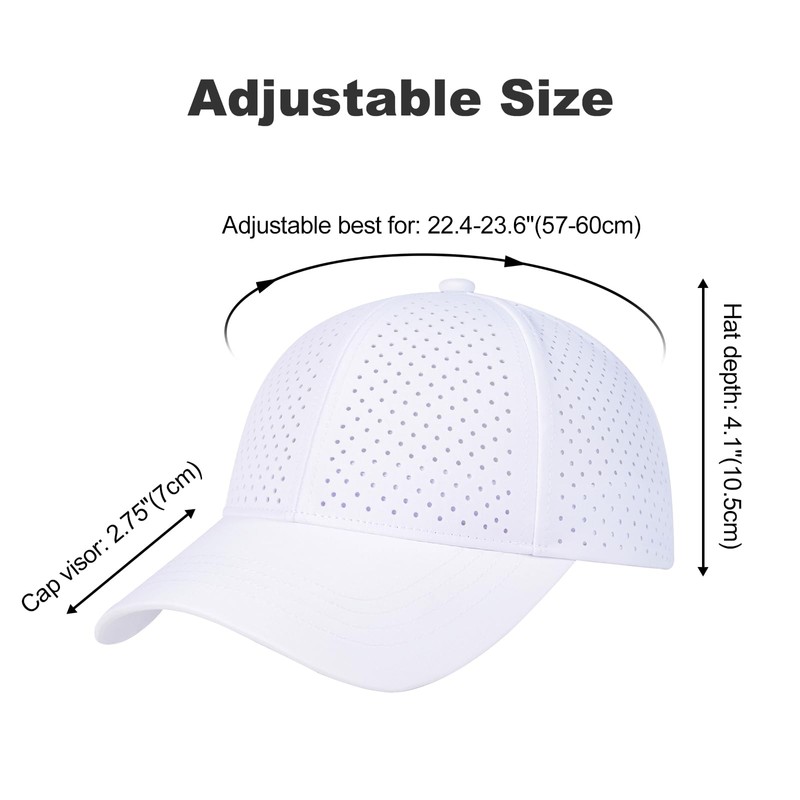 FEINION Men Summer Adjustable Performance Hat Breathable Snapback Laser Perforated Baseball Cap (White)