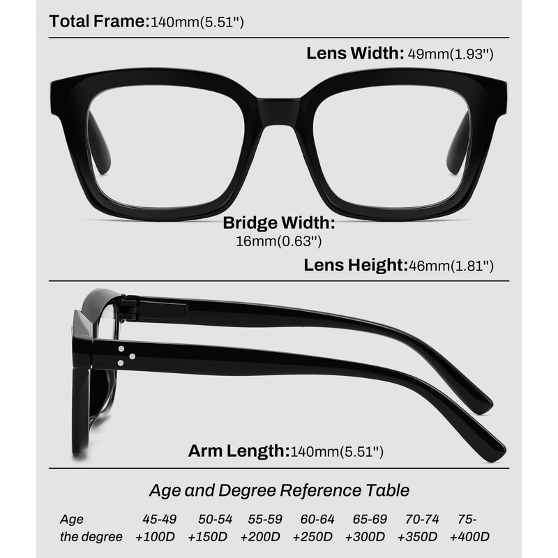 - [Product Dimension] - Height: 46MM(1.81'') Nose Bridge: 16MM(0.63'') Frame Length: 140MM(5.51'') Temple Length: 140MM(5.51'')