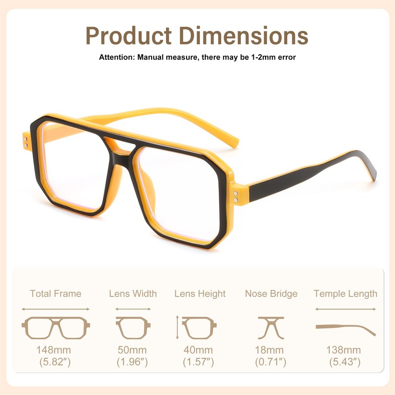 • Stylish Aviator Frame - These anti-blue glasses are not only stylish but also light, not heavy. It subverts the traditional nerd plastic frame design. The new style clear glasses will put you in the spotlight all the time!