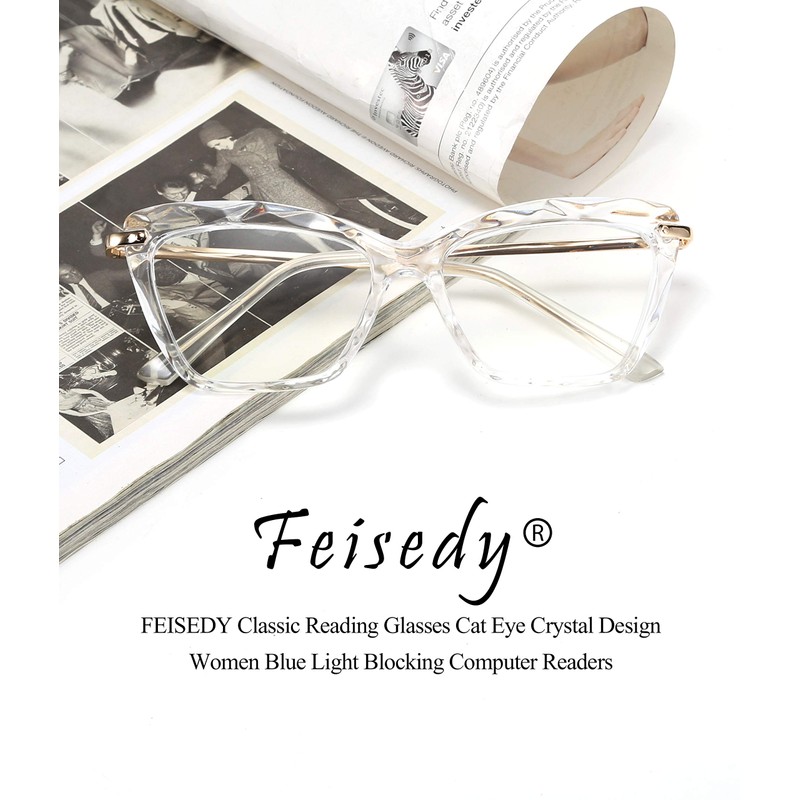 - FEISEDY Classic Reading Glasses Cat Eye Frames Crystal Design make you more stylish. Nice quality frame, Accurate presbyopia degree, Block blue light Lenses, Protect eye health light, perfect for eye protection while reading, sticking to eye health. Great choice for better life.