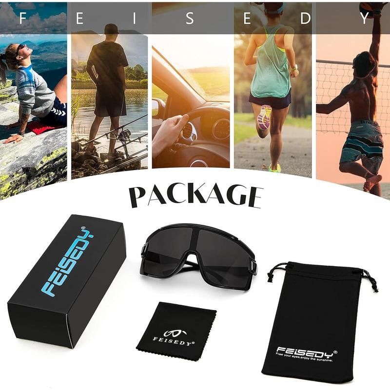 FEISEDY Cycling Glasses Men Women Sport Sunglasses 80s ski Goggles Driving Fishing Biking Sunglasses UV Protection B2944 - Color: 003 Black Frame, Lens Width: 168 Millimeters