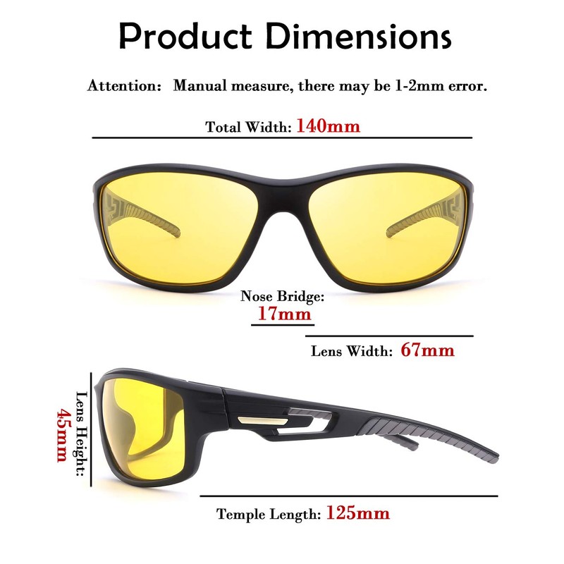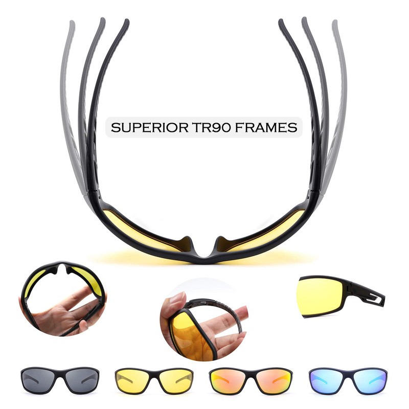 • 超軽量TR90フレーム: TR90フレームは軽量だけではなく、アウトドアでも負担をかけません。 スポーツ中の最高のパートナーです。 そして壊れにくく、倒れにくい性質です。